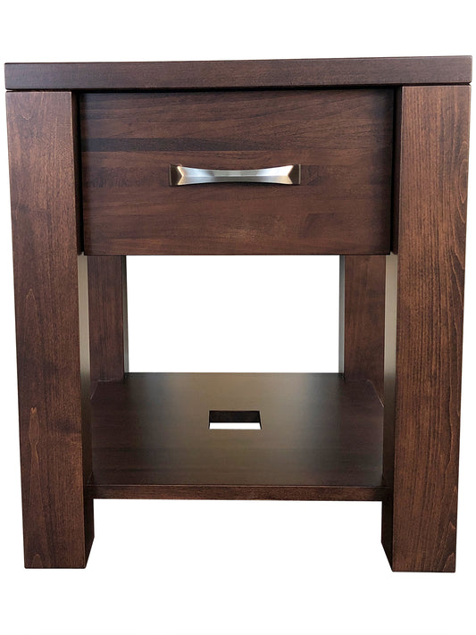 This contemporary hand crafted collection with strong clean lines is one of our exclusive in house designs. Locally made of solid Maple with a choice of 14 different stains, there are pieces for your whole home: Dining Room, Living Room and Bedroom. An optional rift cut white oak is also now available. All dimensions shown are within 1/4″ due to the seasonal effects on wood and the nature of handmade furniture.