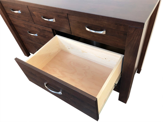 One of the design features of this line is that all tops are 5/4″ thick solid maple. All drawers are made from solid wood, using dovetail joints, and have full extension slides which enable the drawer to be pulled out completely. Built to order, this line can be fully customized to suit your needs.