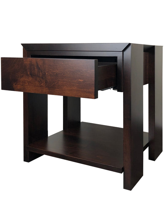 The Chesterman collection, with its long low lines and sturdy construction were inspired by the rugged windswept landscape. Made in Eastern maple, with a beautiful satin finish, clean mitre joints on the vertical supports and 1 ¼” thick solid this line is a modern rendition of the rustic West coast aesthetic. Built to order, the Chesterman pieces are available in a variety of woods and stains. All dimensions shown are within 1/4″ due to the seasonal effects on wood and the nature of handmade furniture.