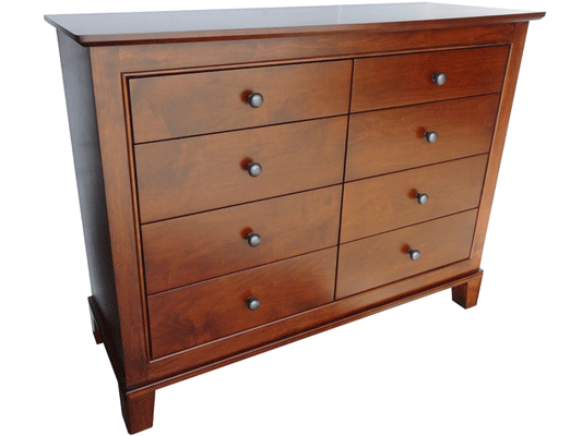All of our dressers are locally made, in a variety of solid woods. Our built to order dressers and chests are available in a range of drawer configurations and sizes. All dimensions shown are within 1/4" due to the seasonal effects on wood and the nature of handmade furniture.