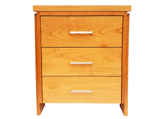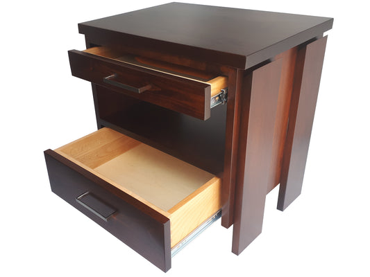 All of our solid wood nightstands are locally made. Most of the nightstands have a selection of drawer configurations. In some cases, customization is available. All dimensions shown are within 1/4" due to the seasonal effects on wood and the nature of handmade furniture.