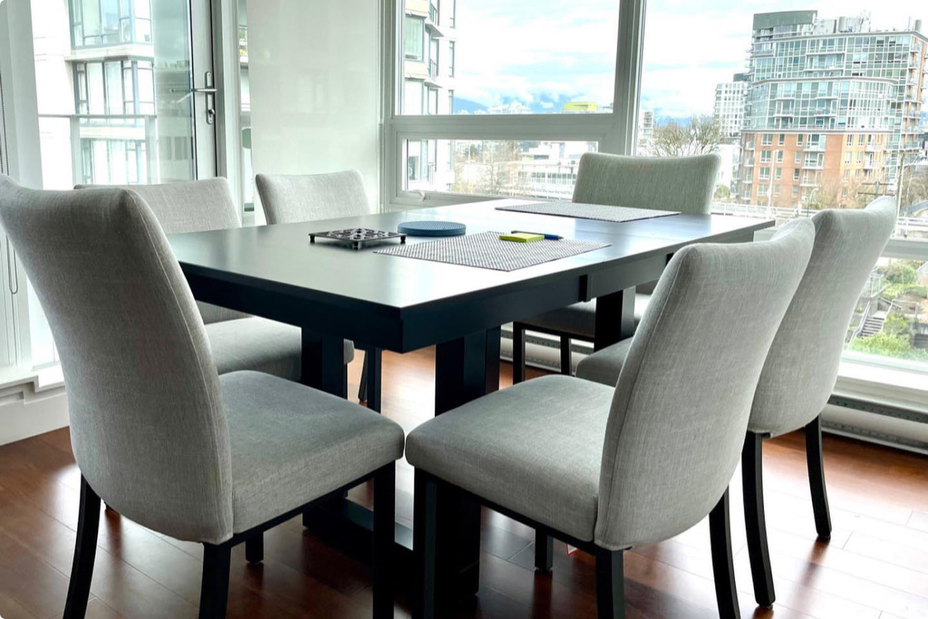 Our furniture is made to order, which means that our client is able to tailor the pieces to their own tastes. Our solid wood furniture is available in many different stains, and often different sizes. Several of our own in house designs can be built to any size and can incorporate specific needs for example: Need your Tangent dining table 2” higher to accommodate a wheelchair? Want the Boxwood dresser to have fewer but deeper drawers? You like the Barcelona desk but need it longer and with a keyboard tray? We can make those adjustments with our own designs, no problem.