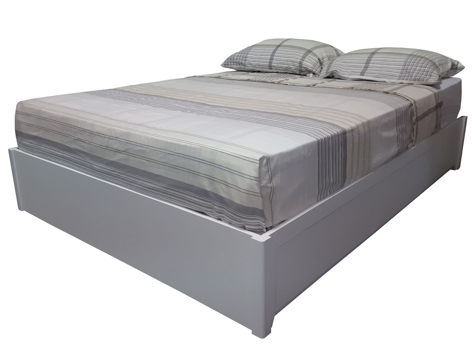 This trim bedroom set is an economical solution for a second bedroom or for a child’s room. Designed without a headboard, the bed is compact and streamlined. Under bed storage drawers make the most of unused space while their generous size can hold extra toys, clothing or linens.