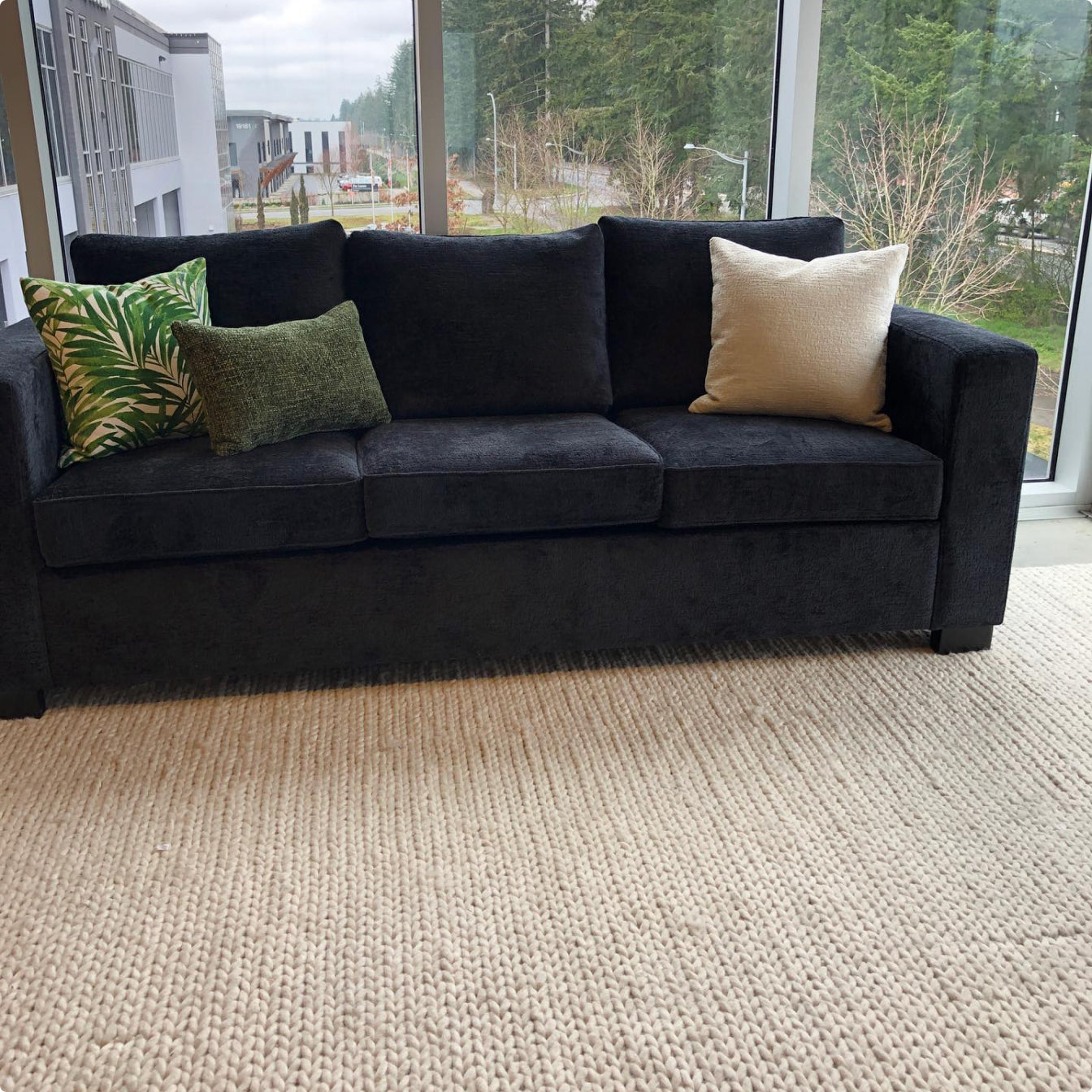 Usually the fabrics used for sofas have Double Rub Counts that range from 15,000 to 100,000. Manmade fibres, such as polyester tend to have much higher rub counts. Patterned, natural fabrics often used as accent pillows on a sofa tend to be in the range of 5,000-15,000. Since accent pillows do not endure the same stress as the main sofa cushions this lower rub count is not a problem.