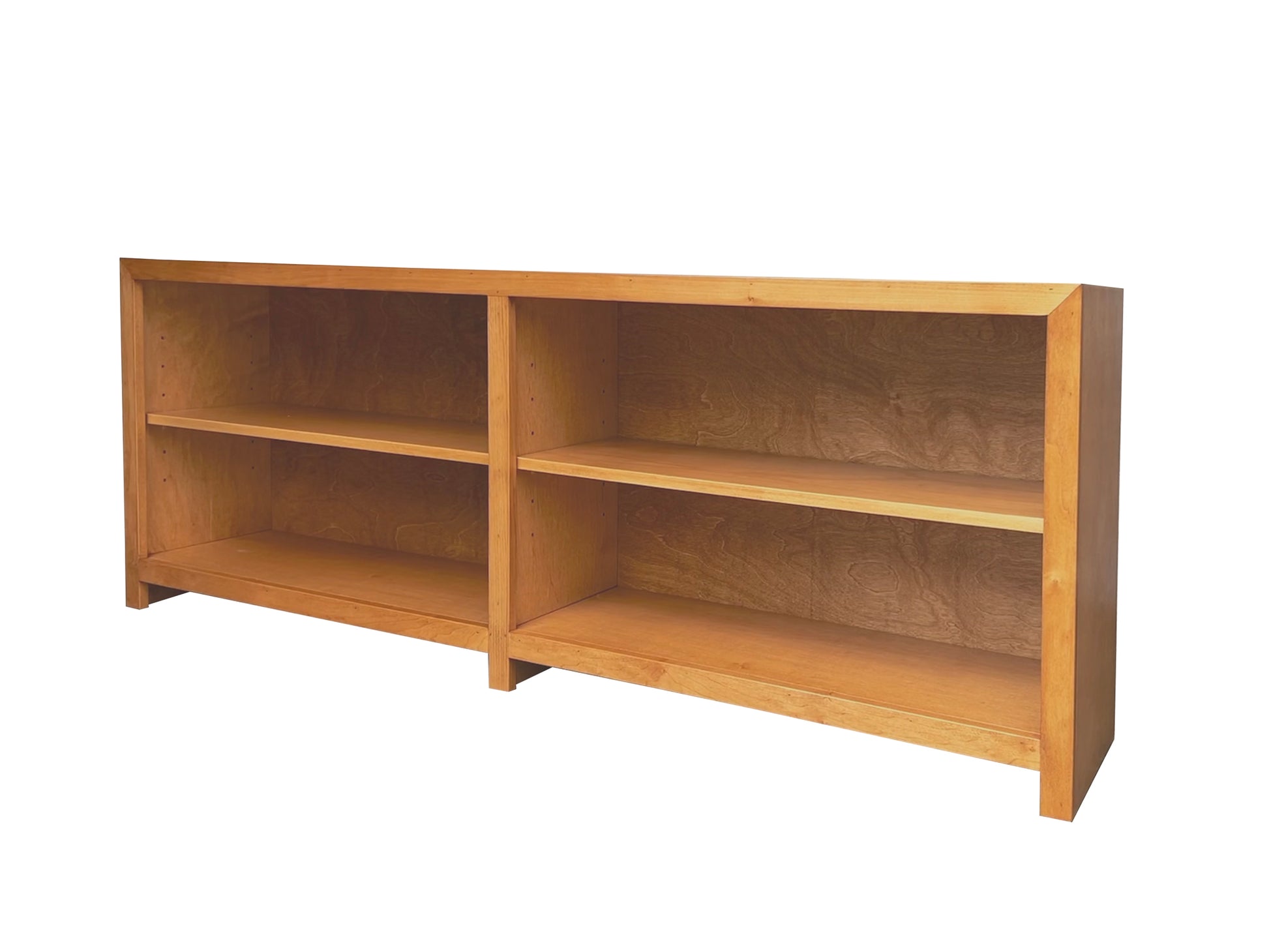 Coleman Low and Wide Bookcase, shown in salem stain, this is locally made and solid wood can also be used for TV stand