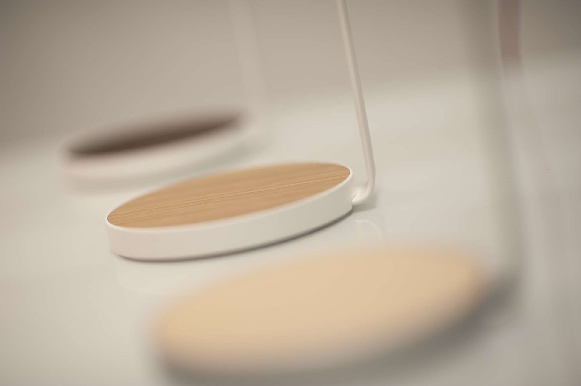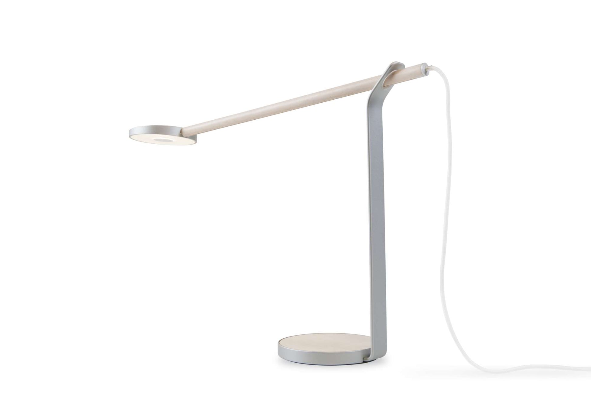 Gravy LED desk light by Kocept - Maple/Silver with a white cord