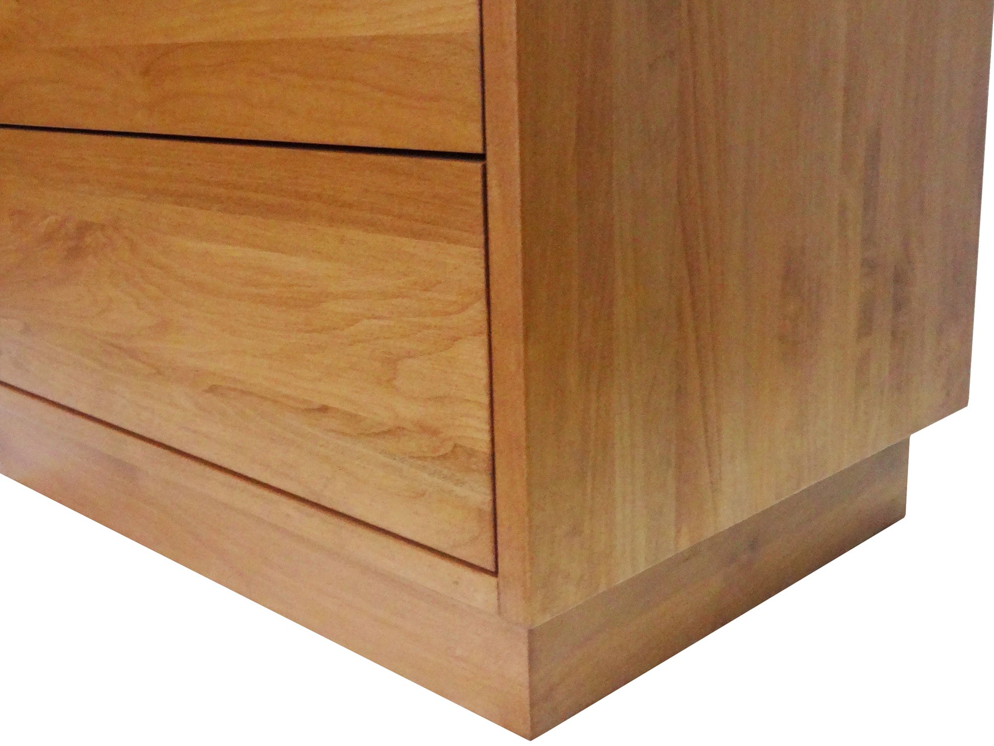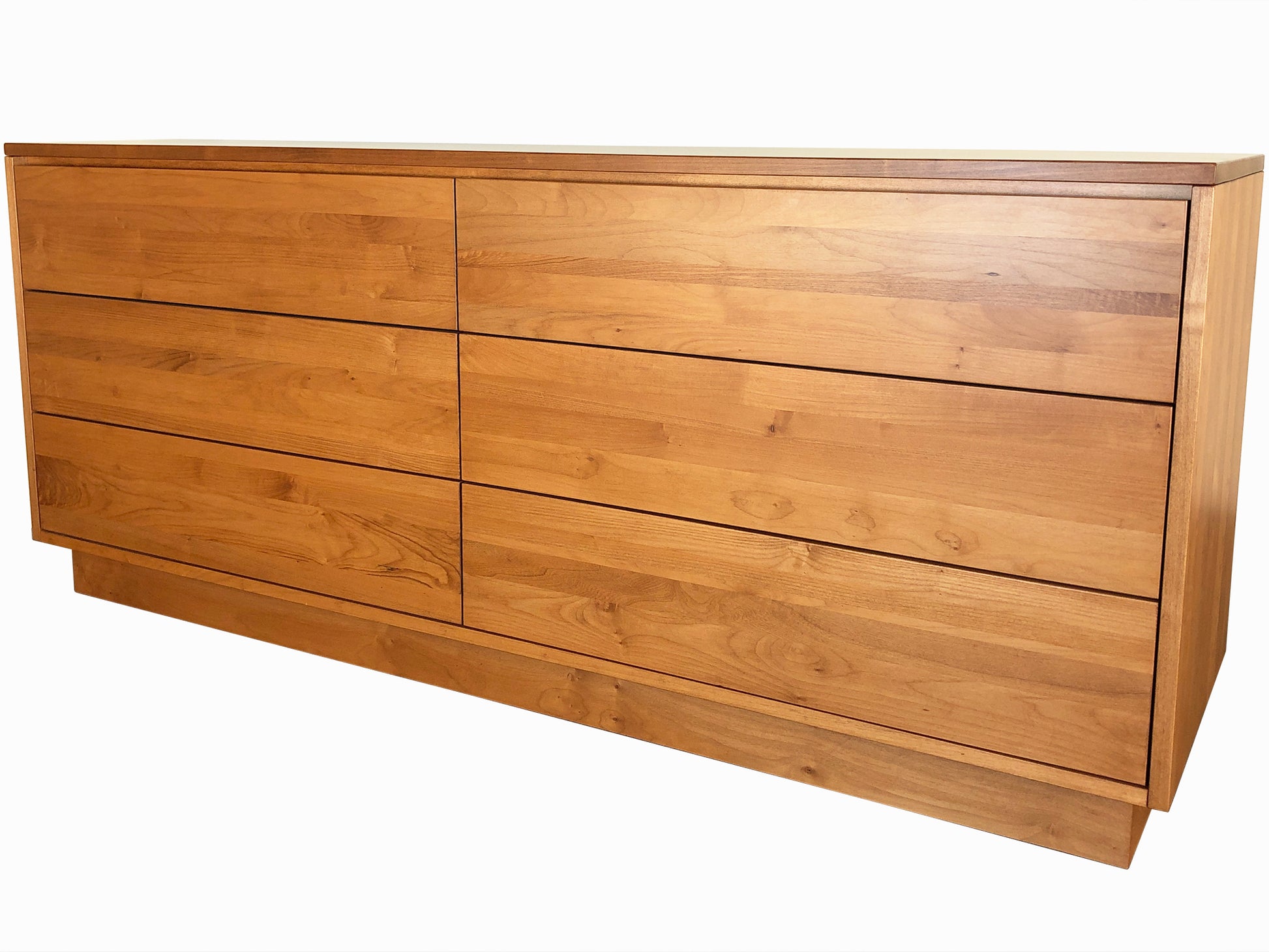 Muse LA Dresser with wood base, this dresser has solid wood sides, top, drawer fronts and boxes and recessed base, made in BC shown in maple