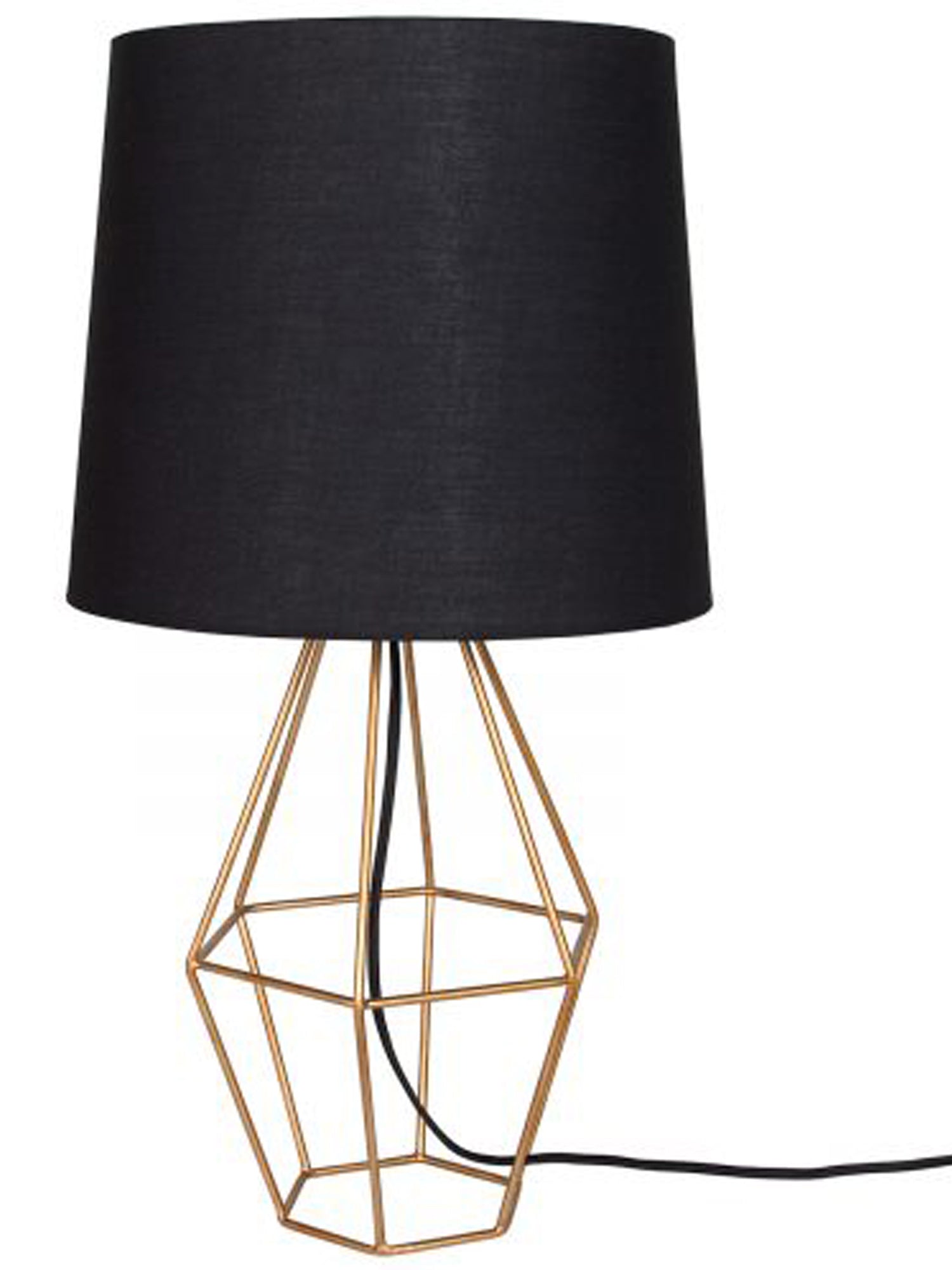 Open and graceful, the Locum lamp brings the glam. The tall, gold metallic openwork base is topped with a glamorous, black ebony shade that diffuses the light just so.