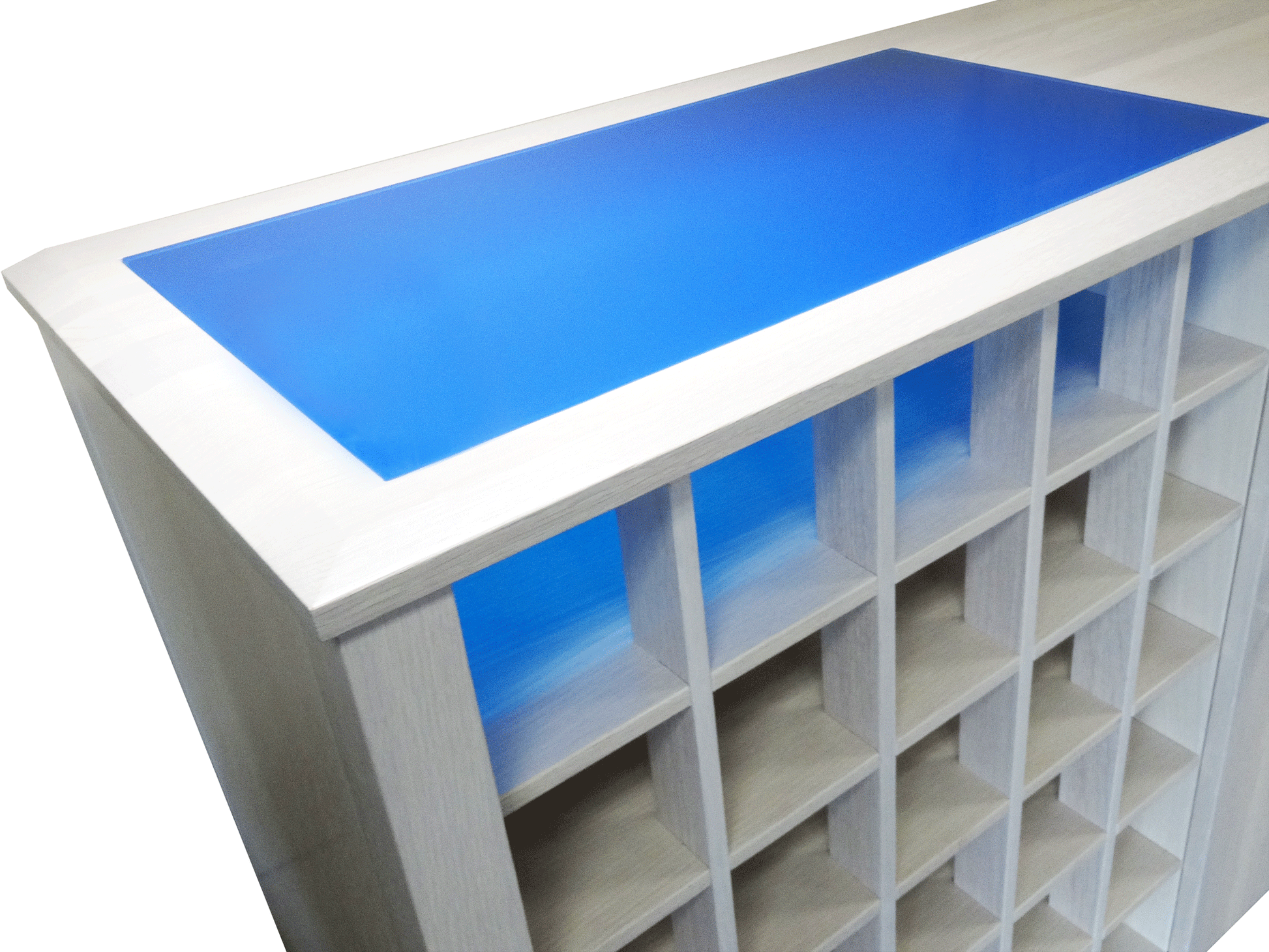 - Blue Starphire glass insert
